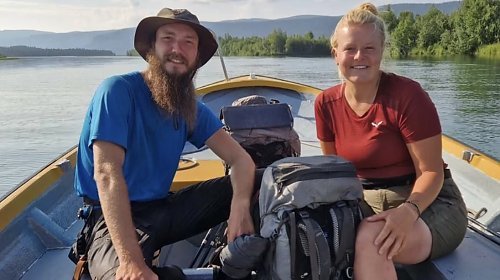 … kommen beide aus dem Ruhrgebiet und waren im Sommer 2021, während einer Wanderung, schon einmal auf der Huskyfarm. Im Mai 2025 startete ihre bisher längste Wanderung vom Nordkapp nach Stockholm, mit eigenem Husky, 2500 km durch Skandinavien. Während einer kleinen Sommerpause auf der Farm beschlossen sie, im Winter zurück in den Norden zu fahren. Die Winter-Wanderpause werden sie nun als Helfer auf der Huskyfarm verbringen, bevor die Rucksäcke wieder geschultert werden.