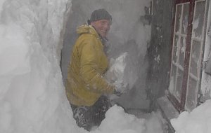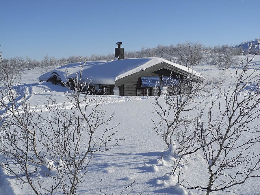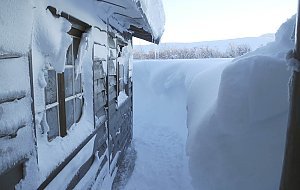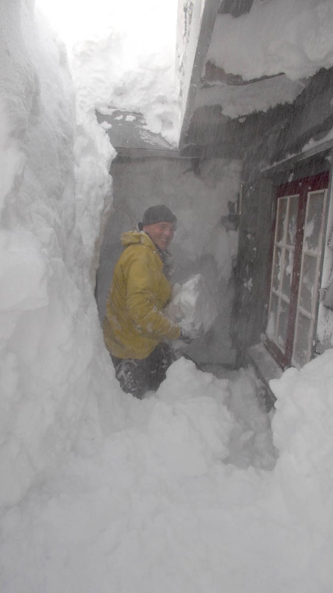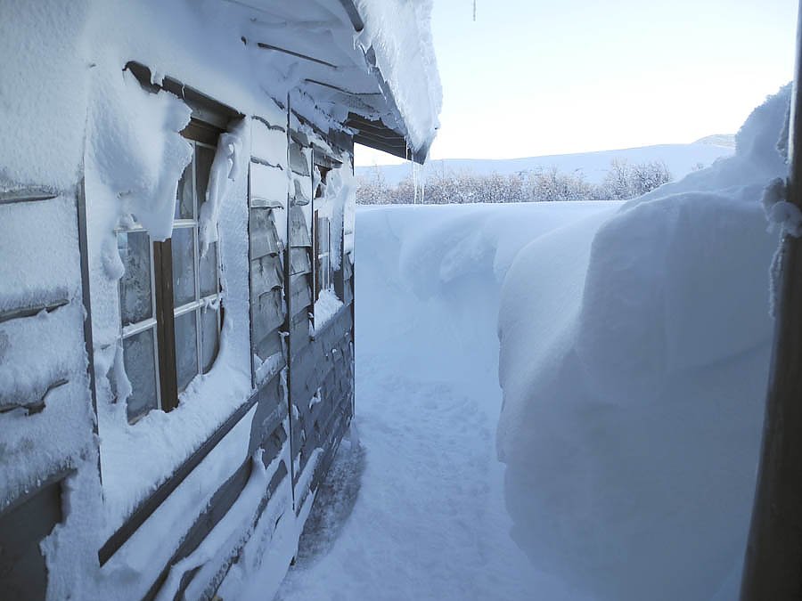 Auch auf unserer Tour in der ersten Aprilhälfte war vom Frühling noch keine Spur zu sehen. Ganz im Gegenteil. Um in die Hütte am See Leinavatn zu gelangen, mussten wir zunächst zum Spaten greifen. Doch bereits am nächsten Morgen war die Eingangstür erneut von Schneemassen völlig verschüttet. Da blieb nur das Fenster als Ein- und Ausgang.