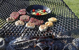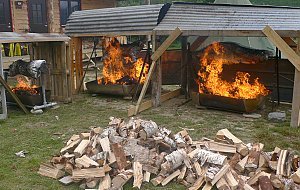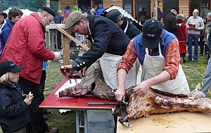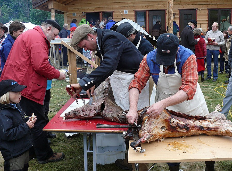Ein Zicklein, ein Lamm und ein Rentier sowie über zweihundert auf dem Hof produzierte Würstchen, diverse Salate und ein riesiger Haufen auf dem Hof gebackene Brötchen verschwanden in hungrige Mägen.