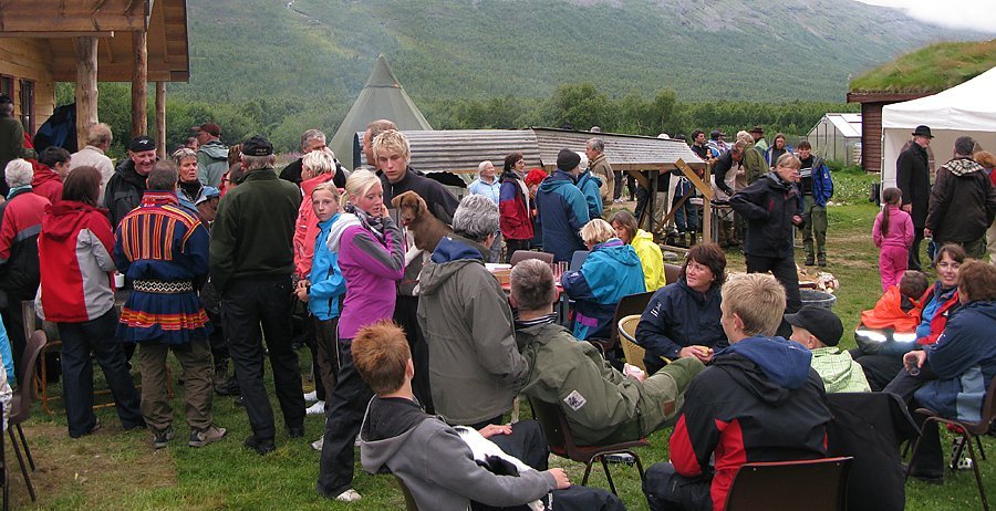 Eigentlich begann das Fest bereits am frühen Nachmittag mit dem Einzug von unseren Partnern Jan und Ane mit ihren vier Rentieren, die sie als Packesel benutzt hatten. Vier Tage benötigten sie durch das Gebirge des Rohkunborri Nationalparks bis zu uns.