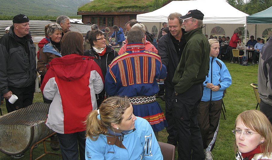 Den kulturellen Höhepunkt bildeten Lena Jinnegren mit ihrer Gitarre und die Samiband Àra. Diese professionellen Musiker gaben genau die Stimmung unserer Lebensweise wieder: Ein Leben am und im Gebiet der Sami zwischen samischer und nichtsamischer Kultur, zwischen Tradition und Moderne .