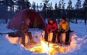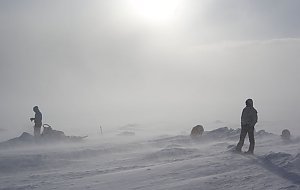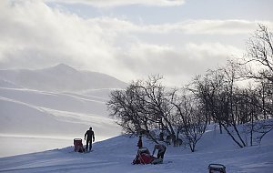 Auch auf unserer letzten langen Tour Ende April waren die Frühlingszeichen noch nicht in der Mehrzahl. Mehrere heftige Schneestürme bremsten uns aus und verhinderten, dass wir unser Ziel, das Dreiländereck zwischen Norwegen, Schweden und Finnland erreichen konnten.