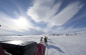 Während Björn auf seiner letzten Schlittentour „Dividal kompakt“ endlich ausgiebig in der Sonne baden konnte, unternahm Regina mit der Familie Spiegel lange Tagestouren in die Täler am See Altevatn. Alina (14 Jahre) steuerte dabei einen eigenen Schlitten als hätte sie nie etwas anderes gemacht. Das ist auch kein Wunder, denn sie steht bei uns auf der Huskyfarm nicht zum ersten Mal auf dem Schlitten.