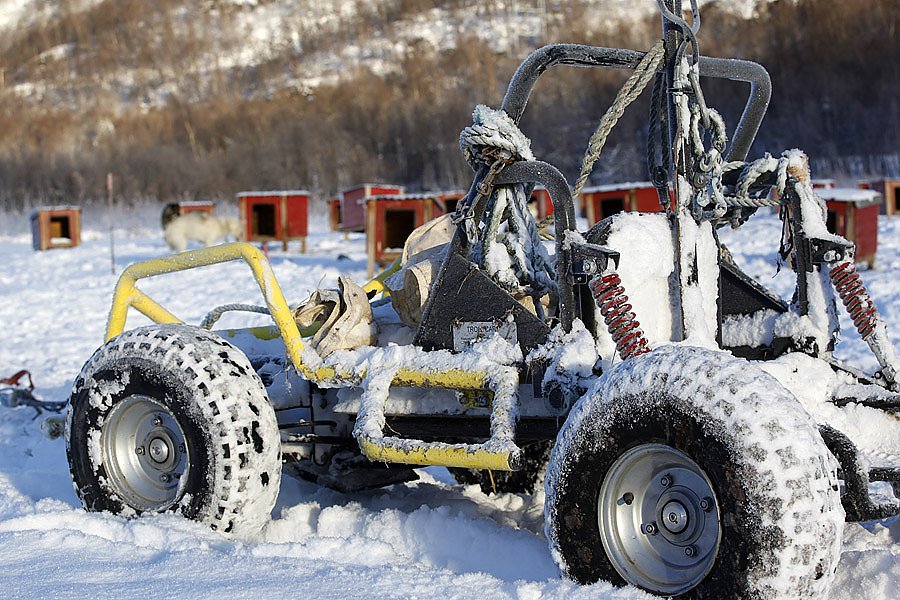 Die Menge des Schnees reicht noch nicht um vom Trainingswagen auf den Schlitten umzusteigen. Aber der Anfang ist gemacht und den Hunden ist anzumerken, dass sie sich richtig wohl fühlen. Schließlich haben sie darauf nun fünf Monate gewartet. Schnee und Frost sind schließlich ihre Elemente.