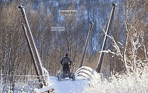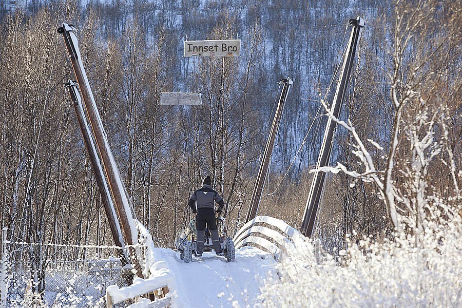 Madita und Felix sind nebenbei mit dem Bau einer kleinen Brücke über den Fluss Salvasskarelva beschäftigt, die im Frühjahr bei der Schneeschmelze weggespült würde. In diesem Zusammenhang wird die Loipe hoch zum See Altevatn an einigen Stellen verbessert um die ersten Kilometer einer jeden Tour für die Teilnehmer einfacher zu gestalten.