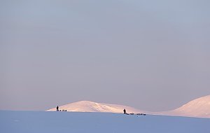 Jetzt müssen wir bis zum 20. Januar warten, bis wir die Sonne das erste Mal wieder sehen können. Meist geschieht dies auf einer Schlittentour nach dem 15. Januar. Das ist jedes Mal ein ganz besonderes Erlebnis, wenn nach acht Wochen die Sonne das erste Mal wieder die Bergwelt durchflutet. Auf dieser Schlittentour zur „Wiederkehr des Lichts“ entstehen die meisten und eindrucksvollsten Fotos, denn das besonders warme Licht mit den langen Schatten um diese Zeit ist nur auf diesen Breitengraden zu sehen.