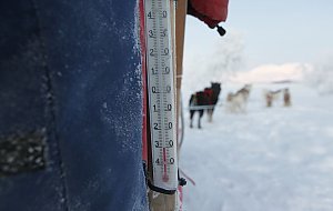 Dafür konnten wir knackige Temperaturen vermelden. Als das Thermometer eines Abends auf -35° fiel, saßen wir zum Glück gemütlich in einer ordentlich beheizten Hütte.